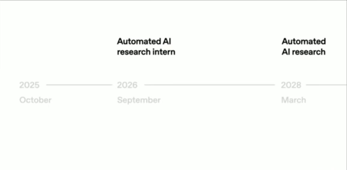 We have set internal goals of having an automated AI research intern by September of 2026 running on hundreds of thousands of GPUs, and a true automated AI researcher by March of 2028.
